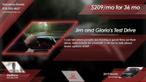 Support Car Dealerships with these exciting client-targeted videos geared for test drive follow-ups and a service department reminder.